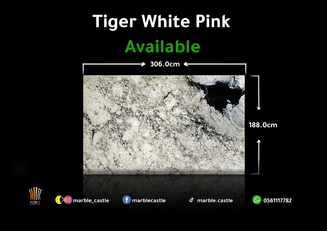 اللون / النقشة أبيض بتعريقات سوداء ولمسة وردية خفيفة